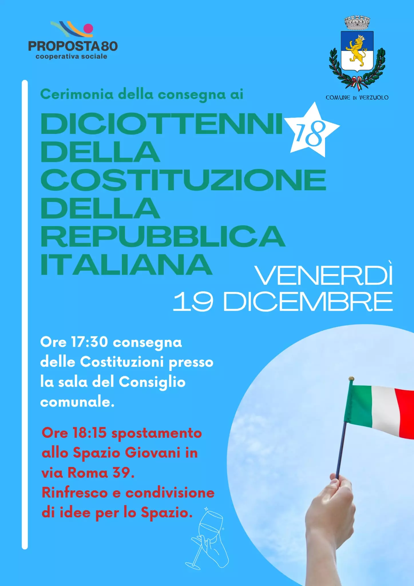 Venerdì 19 dicembre, alle ore 17:30, nella Sala Consigliare del Municipio, l'Amministrazione comunale festeggia i Verzuolesi che nel 2025 hanno compiuto 18 anni.